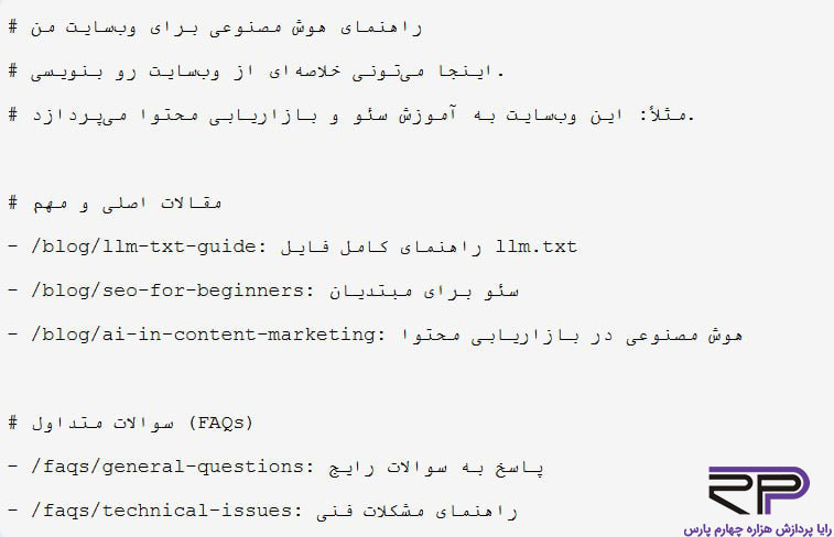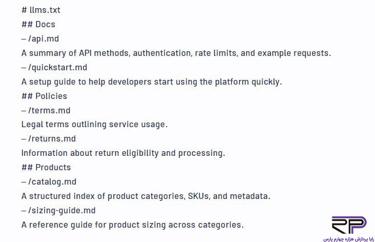 llms.txt نمونه واقعی و استاندارد فایل