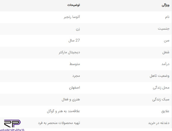 مثال ساده برای طراحی پرسونای مخاطب